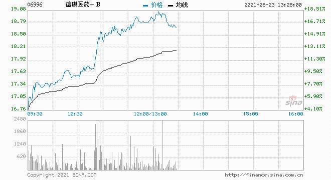 德琪醫(yī)藥-B放量暴漲超19% 股價(jià)創(chuàng)逾4個(gè)月新高