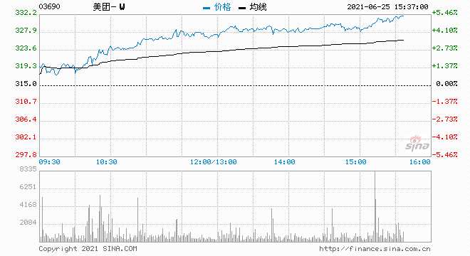 6月25日消息,美團(tuán)尾盤拉升,現(xiàn)漲5.14%,報331.20港元,最新市值20240.8億港元。
