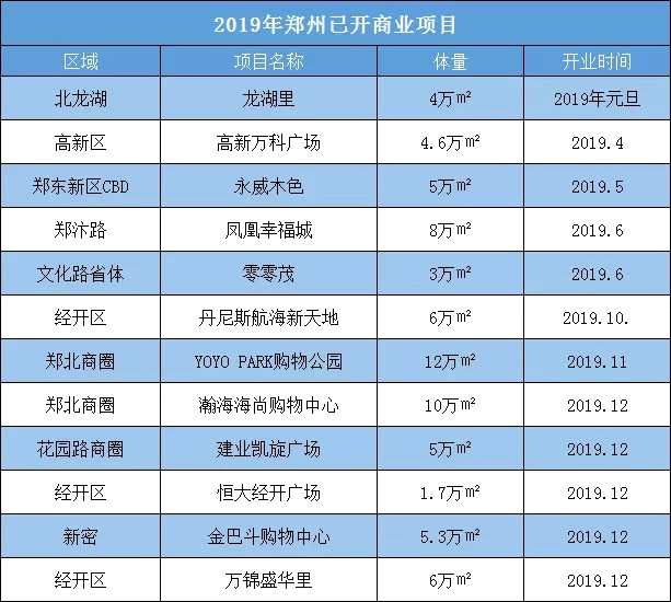 2019年鄭州已開業(yè)商業(yè)項(xiàng)目