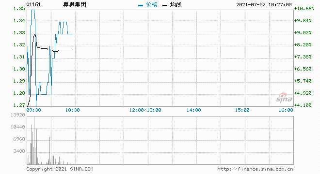 奧思集團(1161.HK)逆勢拉升漲超10%,報1.34港元,成交額放量至1500萬港元,總市值逾9億港元。