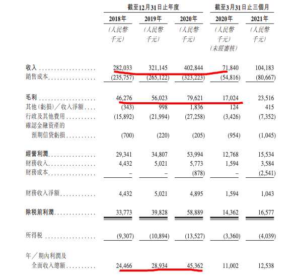 于2018年、2019年、2020年及截至2020年及2021年3月31日止三個月,整體毛利率分別為16.4%、17.4%、19.8%、23.7%及22.6%。