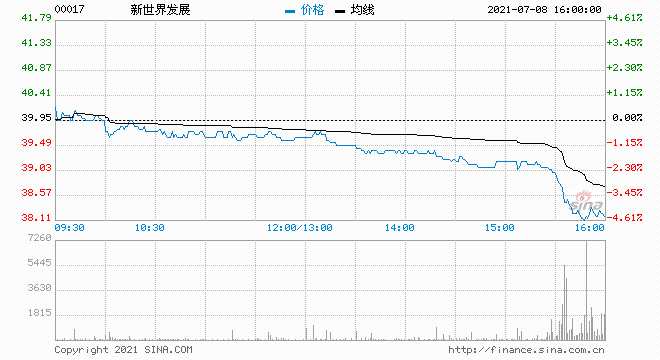 新世界發(fā)展(0017.HK)跌逾4%,報(bào)38.3港元,總市值971億港元。