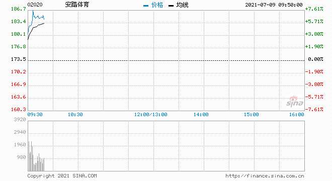 7月9日消息,安踏股價(jià)拉升漲超5%,現(xiàn)報(bào)182.9港元,市值達(dá)4900億港元,上半年安踏品牌產(chǎn)品的零售金額同比增長35-40%。