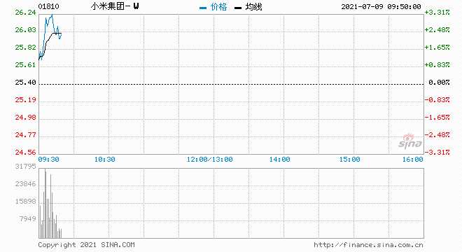 小米集團(tuán)-W(1810.HK)漲逾3%,報(bào)26.2港元,總市值6572億港元。