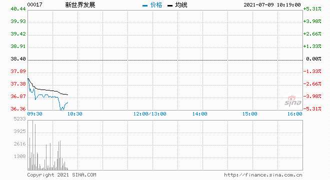 新世界發(fā)展(0017.HK)續(xù)跌約4%,報(bào)36.9港元,近兩日累跌7.6%,總市值938億港元。