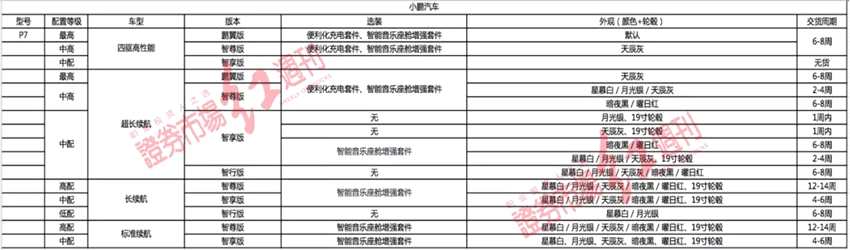 對(duì)比而言,P7相對(duì)于G3增長明顯。小鵬汽車官網(wǎng)顯示,P7的交付時(shí)間差距較大。比如P7超長續(xù)航+智享版+無選裝+外觀(月光銀/天辰灰+19寸輪轂)的交付時(shí)間為1周內(nèi),而P7+長續(xù)航+智尊版+選裝(智能音樂坐艙增強(qiáng)套件)+外觀(星慕白/月光銀/天辰灰/暗夜黑/曜日紅、19寸輪轂)的交付時(shí)間為12-14周。