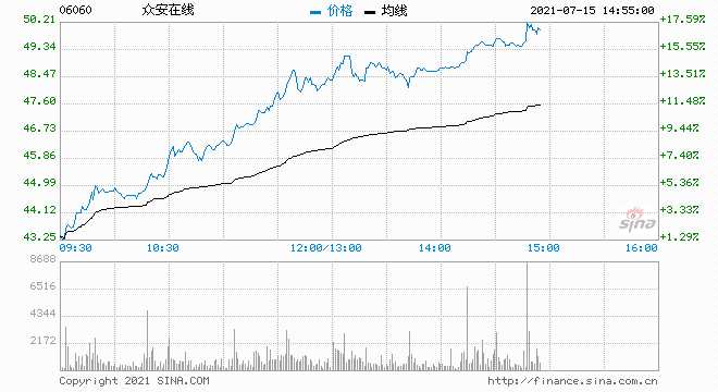 摘要: 內(nèi)險股集體走強,其中,眾安在線(6060.HK)領(lǐng)漲,盤中最高漲超16%至49.75港元,創(chuàng)逾5個月以來最大單日漲幅,股價創(chuàng)3個月新高,成交額放大至近10億港元,最新市值超700億港元。