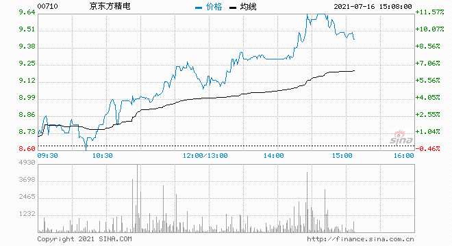 摘要: 京東方精電(00710)午后漲超11%,截至發(fā)稿,漲11.57%,報(bào)9.64港元,成交額9346.91萬港元。消息面上,京東方精電此前公布,預(yù)期集團(tuán)截至2021年6月30日止6個(gè)月期間將錄得股東應(yīng)占溢