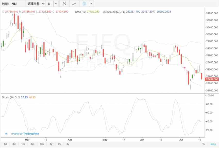看回恒指日線圖,上個星期那么辛苦咬得返上28000點收市,今日Boom一聲就無了,反方向向下插,10天線得而復失,就連Slow STC(14,3)都在中軸水平見%K線穿%D線??椿睾阒概P茏C街貨圖見26800至26899點有相當于1245張期指,為牛證重貨區(qū)?!覆皇沁B27000點都想穿呀?」不是,你怕今日又幾百點那樣向下跌法,這些錢還不涌入去貼價牛博第二日再炒返上去咩,現(xiàn)在最貼價27500至27599點牛證層有逾400張期指。又落一會雨,行去關上一點點窗再回來見指數(shù)好似沒什么意欲彈高,截至現(xiàn)在10點10分,噢,Day Low暫時最低做過27481點,換言之最貼價層落到27400至27499點,開市一個鐘都不夠大市又殺了逾900張期指街貨。
