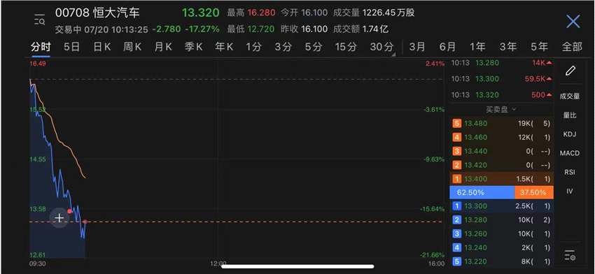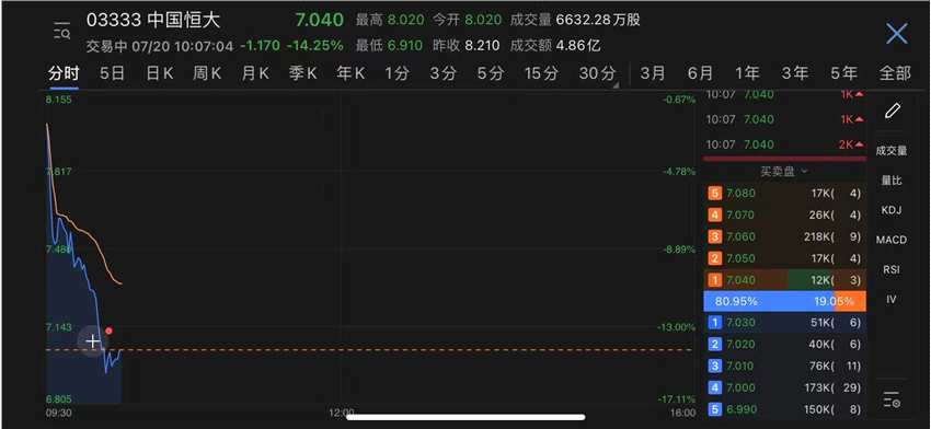 恒大系再度重挫:中國恒大港股跌幅超14% 20恒大01跌逾13%