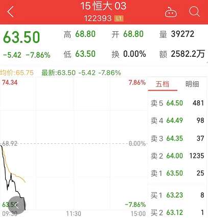 而恒大債券今日也延續(xù)跌勢,“20恒大01”跌超13%,“15恒大03”跌近8%、“19恒大01”跌近9%。