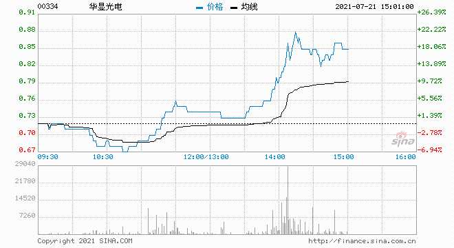OLED概念股集體走高,截至發(fā)稿,華顯光電(00334)漲18.06%,報0.85港元;京東方精電(00710)漲11.39%,報11.34港元;信利國際(00732)漲10.28%,報2.79港元;晶門半導(dǎo)體(02878)漲12.5%,報0.99港元。