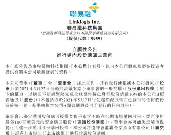 摘要: 聯(lián)易融科技公布,使用最多1億美元的資金回購股份。該集團(tuán)指,有意行使根據(jù)股東的股份購回授權(quán),以購回不超過緊隨完成全球發(fā)售后已發(fā)行股份總數(shù)10%的B類普通股。該集團(tuán)指,