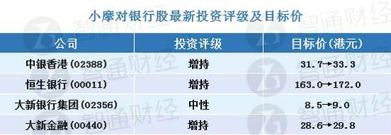 摘要: 小摩發(fā)布研究報告稱,港銀板塊中,首選中銀香港(02388)及恒生銀行(00011),指其在未來12至18個月業(yè)務復蘇的前提下最能受惠。上半年信貸成本下降將推動銀行盈利,
