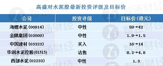 高盛:水泥股最新評級及目標(biāo)價(jià) 維持對水泥業(yè)審慎看法