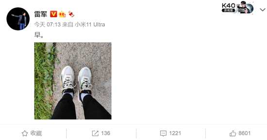 安排!7月26日早晨,雷軍再發(fā)自己穿著鴻星爾克的鞋子的照片,網(wǎng)友表示,“哈哈,雷總也換鴻星爾克了”,“如果鞋子不合適,那就是雷總的腳長歪了”,“我猜雷總明早要穿貴人鳥(603555,股吧)了 哈哈”
