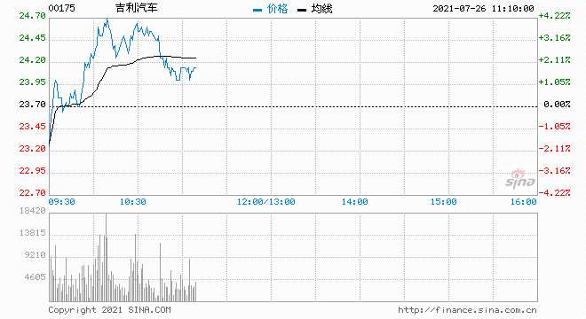 摘要: 吉利汽車(chē)(0175.HK)一度逆勢(shì)漲逾4%,高見(jiàn)24.7港元,現(xiàn)漲3.38%,報(bào)24.5港元,總市值2406億港元。浙江吉利旗下瑞典沃爾沃汽車(chē)公布中期業(yè)績(jī),純利82.44億瑞典克朗(73.75億港元)