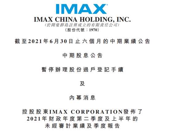 IMAX中國(guó):2021年中期實(shí)現(xiàn)扭虧為盈 調(diào)整后利潤(rùn)為2130萬美元