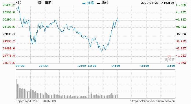摘要: 7月28日消息,恒指午后翻紅,碧桂園服務大漲13%,安踏、藥明生物漲超8%,美團轉(zhuǎn)漲,小米走高,各大銀行股護盤。