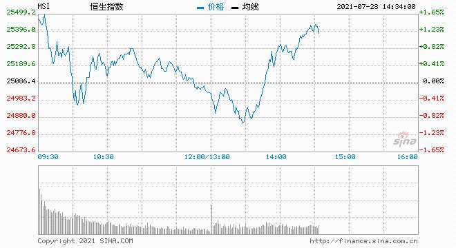 摘要: 7月28日消息,港股恒指午后漲幅持續(xù)擴大,截至發(fā)稿,恒指漲1.3%,國企指數(shù)漲幅突破2%,恒生科技指數(shù)大漲2.6%。藍籌股方面,碧桂園服務漲近15%,藥明生物、安踏等漲超9%,美團漲幅擴大至7%。