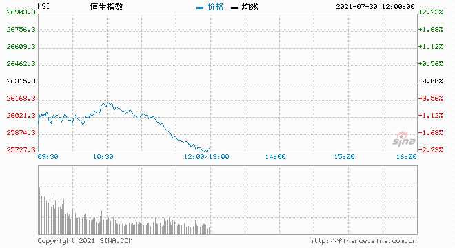 恒指午間收跌2.1% 恒生科技指數(shù)跌逾4%