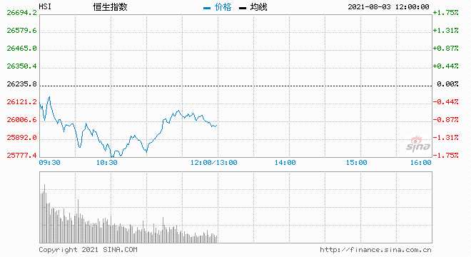 港股上午盤三大指數(shù)均收跌,大型科網(wǎng)股重挫,致恒生科技指數(shù)跌2.36%報6635點,恒指跌0.95%報25987點,國指跌1.11%報9233點。