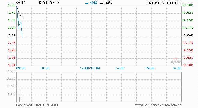 SOHO中國(00410)早盤高開逾7%,截至發(fā)稿,漲7.14%,報3.45港元,成交額445.05萬港元。