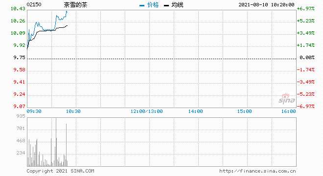 8月10日消息,奈雪的茶漲6.26%,現(xiàn)報10.36港元,最新市值177.69億港元。
