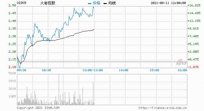 繼昨日收漲超7%后,火巖控股(1909.HK)今日再度大漲,現(xiàn)漲超16%,報2.49港元,市值95.62億港元。