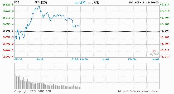 摘要: 上午港股市場主要指數(shù)低開后震蕩上行,截至半日收盤漲幅收窄,恒指漲0.21%報26661點,國指漲0.56%報9552點,恒生科技指數(shù)漲0.04%報6833點,主板半日成交859億港元。