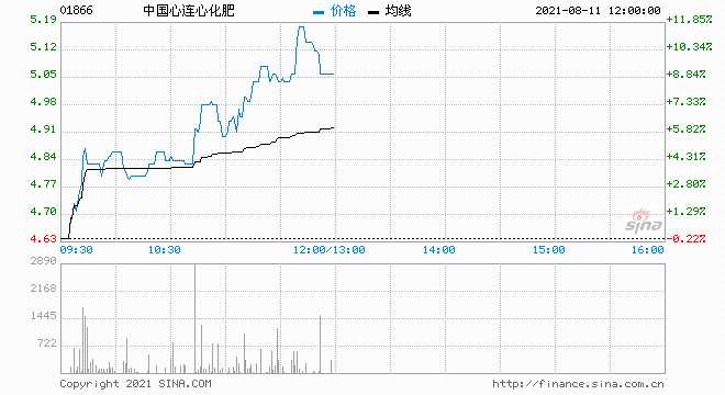 中國心連心化肥大漲超9% 創(chuàng)逾一個(gè)月新高