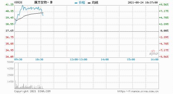 康方生物-B(09926)早盤漲超9%,截至發(fā)稿,漲8.63%,報(bào)40.9港元,成交額1.19億港元。