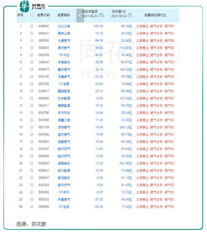 值得注意的是,盡管燃氣板塊相關股票強勢拉升,但是燃氣板塊的最新滾動市盈率為24.73倍,低于行業(yè)估值歷史中位數(shù)的31.07倍。