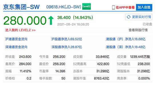 摘要: 查看最新行情新浪科技訊8月24日下午消息,港股主要指數集體大漲,恒生指數收漲2.46%;恒生科技指數大漲7.06%,創(chuàng)史上第二大單日漲幅。大型科技股集體反彈,港股快手漲超15%,京東港股漲近15%,