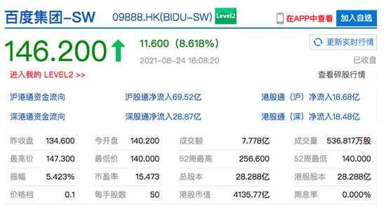 新浪科技訊 8月24日下午消息,港股主要指數集體大漲,恒生指數收漲2.46%;恒生科技指數大漲7.06%,創(chuàng)史上第二大單日漲幅。大型科技股集體反彈,港股快手漲超15%,京東港股漲近15%,美團漲超13%,嗶哩嗶哩漲超10%,阿里巴巴港股漲超9%,騰訊、百度港股漲超8%。