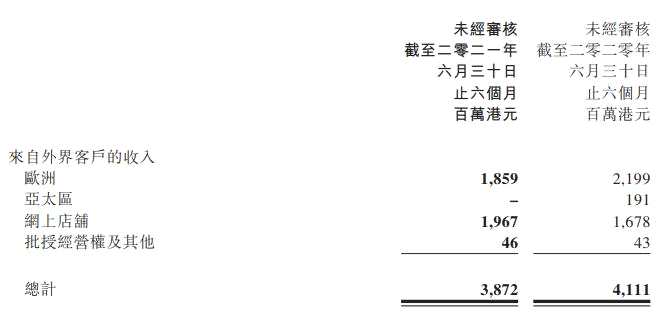 2021年1-6月,思捷環(huán)球收入為38.72億港元,同比輕微下降5.8%,該減少主要是因為執(zhí)行疫情防控措施致使歐洲市場的收入下降(約14.4%),以及公司暫時退出亞太區(qū)及關閉業(yè)績不佳的店鋪,不過公司數碼化業(yè)務錄得17.3%強勁增長,從而抵消上述減少。