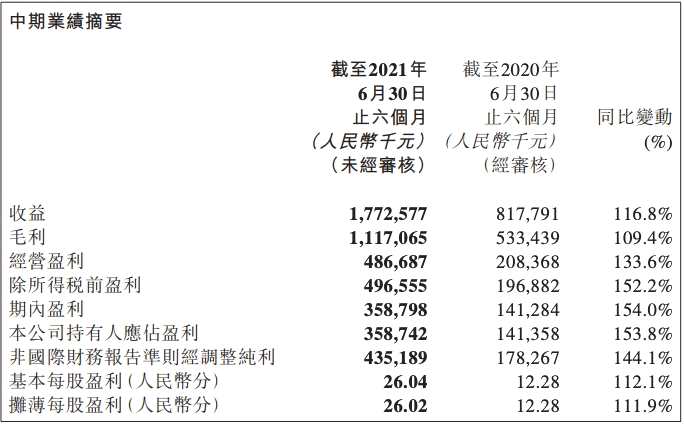 8月27日,泡泡瑪特披露2021年上半年業(yè)績報告,收入達到人民幣17.73億元,同比增長116.8%,經(jīng)調整純利達到人民幣4.35億元,同比增長144.1%。