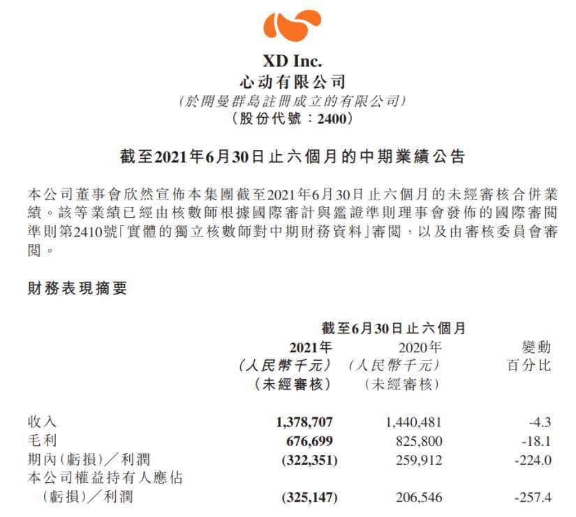 26日,心動公司(以下簡稱心動)發(fā)布了2021年的中期業(yè)績。期內(nèi)收入13.8億,期內(nèi)利潤-3.2億。
