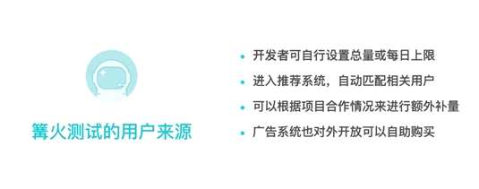 以篝火測試為例,它的核心是讓產(chǎn)品在正式上線前,進(jìn)行小范圍測試。相比于 App Store 或者 Google Play,參與 TapTap 篝火測試的游戲,將與正式版游戲一樣,被列入可在 TapTap 首頁展示的游戲庫中,得到自然露出與推薦。