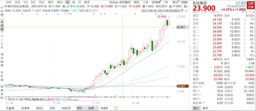 由于今天將要公布業(yè)績,東岳集團(tuán)的股價也是上躥下跳,一度創(chuàng)新高25.3港元。