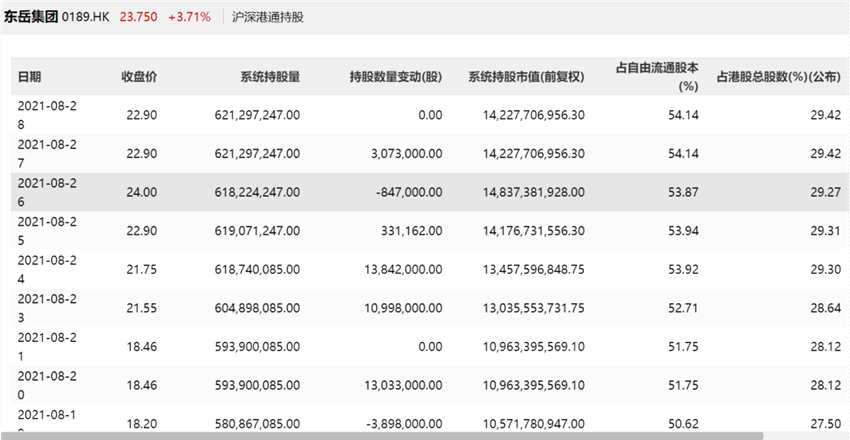 東岳暴漲的背后離不開內(nèi)資的瘋狂加持。目前,內(nèi)資持倉港股已經(jīng)達(dá)到驚人的29.42%,持倉市值大約150億港元,占到港股全部流通股的54.14%。今年年初持股只有9.66%,持倉凈增加了4億股。