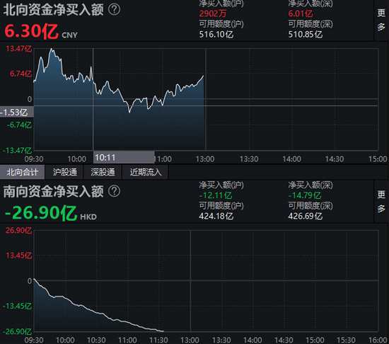 午評:北向資金半日凈流入6.30億元 滬股通凈流入2902萬元