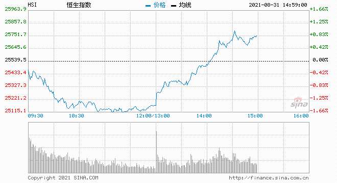 8月31日消息,港股午后持續(xù)拉升,恒生指數(shù)漲幅擴(kuò)大至1%,科技股漲幅居前,恒生指數(shù)漲幅超2%。恒指成份股中,美團(tuán)漲超6%,海底撈漲近6%,阿里健康漲5.54%,萬(wàn)州國(guó)際漲超4%,吉利汽車漲3.5%,阿里巴巴漲近3%,騰訊漲2%。