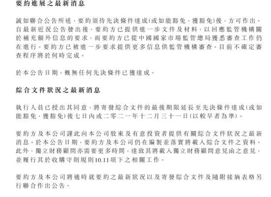 SOHO中國發(fā)布公告,就要約方收購公司全部已發(fā)行股份事宜,要約方已提供進一步文件及材料,以回應(yīng)監(jiān)管要求,要約方獲悉審查工作仍在進行,目前不確定審查程序?qū)⒂诤螘r完成。