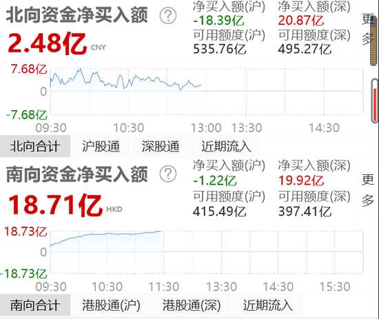 午評(píng):北向資金版日凈流入2.48億元 滬股通凈流出18.39億元