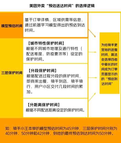 近日,美團(tuán)外賣首次公開關(guān)于騎手配送時間的計算規(guī)則,介紹了預(yù)估送達(dá)時間背后的算法邏輯。同時,為了更好地提升騎手和用戶全流程體驗,美團(tuán)外賣召開多場騎手懇談會充分評估各類配送場景,組織相關(guān)領(lǐng)域?qū)<覍W(xué)者進(jìn)行研討,推出多項“算法取中”改進(jìn)舉措:如試點將騎手預(yù)估送達(dá)時間由原先的“時間點”調(diào)整為彈性的“時間段”,試點數(shù)據(jù)顯示用戶對騎手的差評率降低了50.7%,有效提升騎手及用戶體驗;同時針對送餐過程中可能遇到的各類特殊場景,適當(dāng)為騎手延長配送時間。