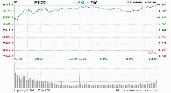 摘要: 9月10日消息,美股周四收跌,道指與標(biāo)普500指數(shù)錄得連續(xù)第四個(gè)交易日下滑。今日開盤,恒生指數(shù)高開0.6%,隨后漲幅擴(kuò)大。截至收盤,恒生指數(shù)漲1.91%,報(bào)26205.91點(diǎn);國企指數(shù)漲2.21%,