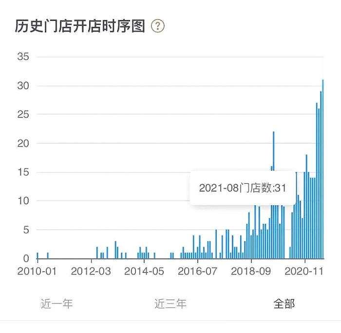 對此,上述關(guān)注酒水行業(yè)的二級投資人認(rèn)為,這一目標(biāo)很有可能實現(xiàn),海倫司發(fā)展?jié)摿艽?。比?021年下半年開始,海倫司門店增速上漲,每月擴(kuò)張30多家。