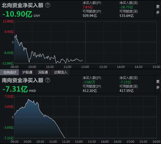 午評:北向資金凈賣出10.9億元 滬股通凈買入7.83億元