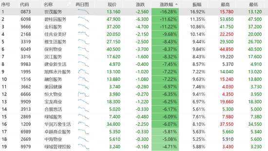 物業(yè)股跌幅擴(kuò)大:世茂服務(wù)跌超16%碧桂園服務(wù)、金科服務(wù)跌超11%
